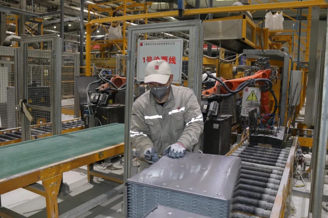 作为麻豆av 的环保企业,大唐南京环保建有每年30000立方米平板式脱硝催化剂生产线和每年10000立方米脱硝催化剂再生产线。一台台巨大的橘色“板件机器”像一只“大手臂”,不停抓取板件“奋力工作”,大唐南京环保自主可控的自动化产线、产品都源自这里。