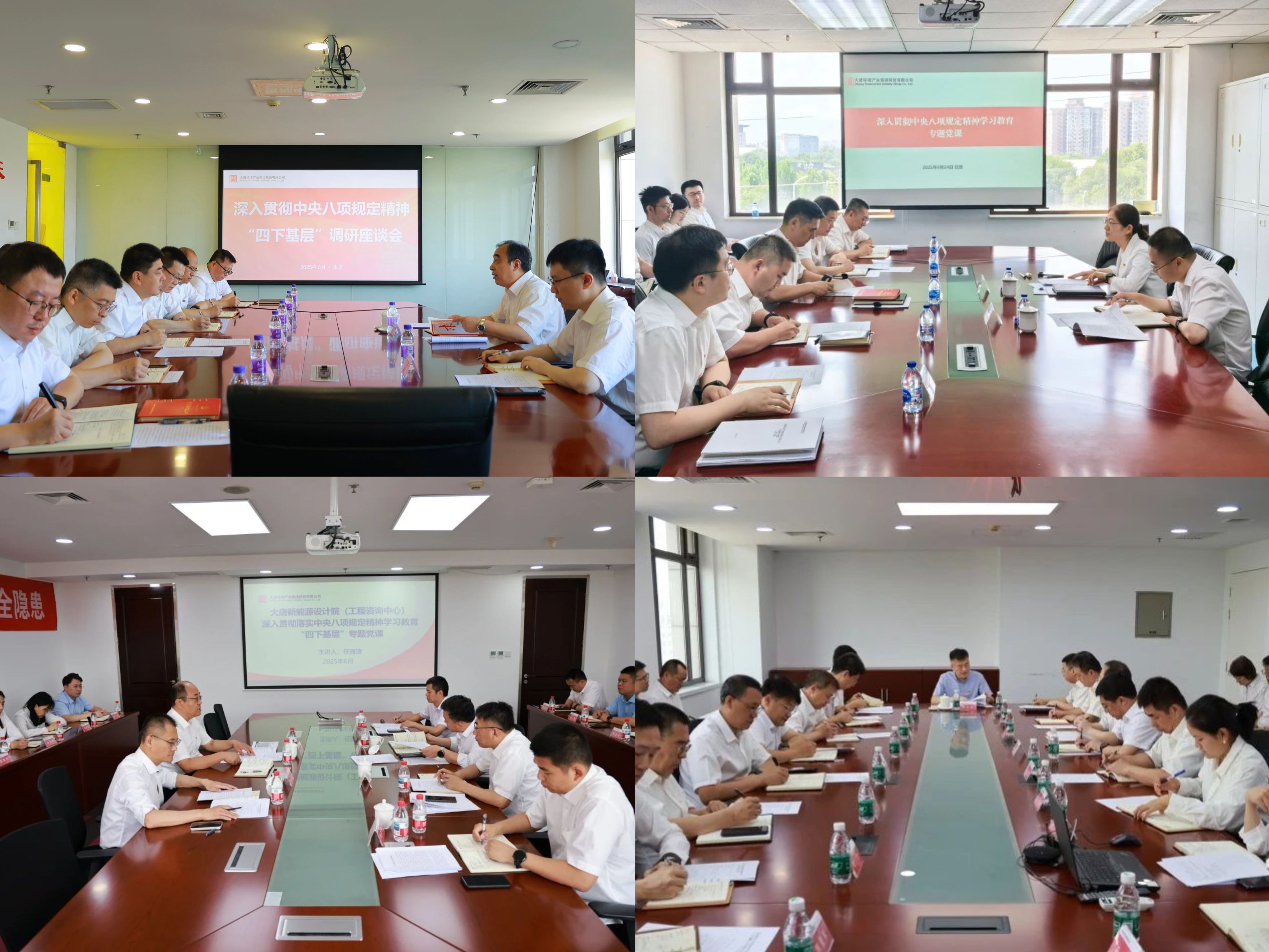 本网讯 为扎实有效开展深入贯彻中央八项规定精神学习教育,弘扬“四下基层”优良传统,大唐环境领导班子成员积极响应号召,公司党委书记、董事长朱利明等5位公司领导分别深入8家基层企业,通过讲授专题党课、开展调研督导、下沉接访化解矛盾、现场办公解决问题等多种形式,将党的理论与政策送到基层,以实际行动转作风、解难题、促发展,推动学习教育走深走实。