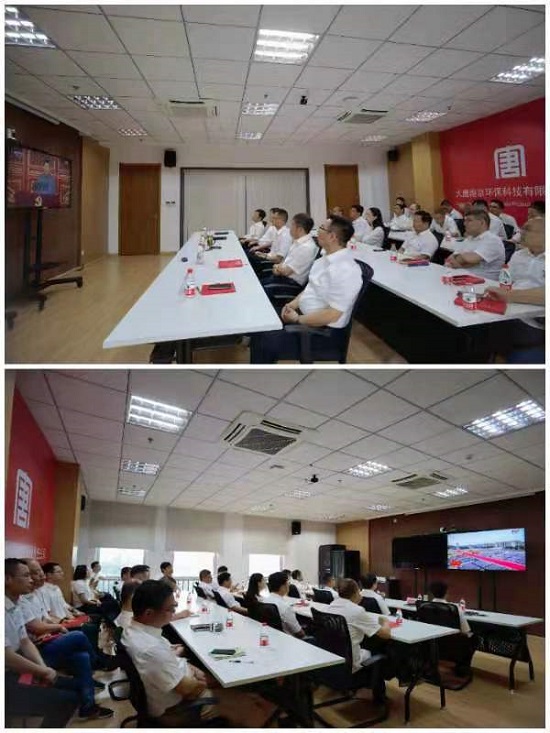 本网讯 7月1日上午8时,庆祝中国共产党成立100周年大会在北京天安门广场隆重举行。南京环保公司组织公司全体党员收听收看庆祝大会现场直播,共同庆祝中国共产党百年华诞。观看直播结束后,公司党员们面对鲜红的党旗,重温入党誓词。