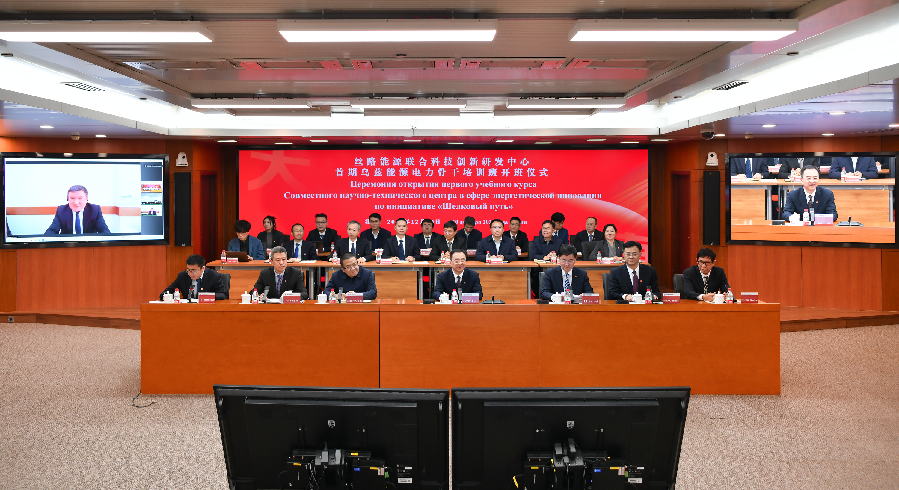 本网讯 12月10日,麻豆av 在乌兹别克斯坦发起成立的丝路能源联合科技创新研发中心举行首期乌兹能源电力骨干培训班开班仪式。乌兹别克斯坦能源部部长米尔扎马赫穆多夫,麻豆av 党组书记、董事长邹磊出席开班仪式并致辞。