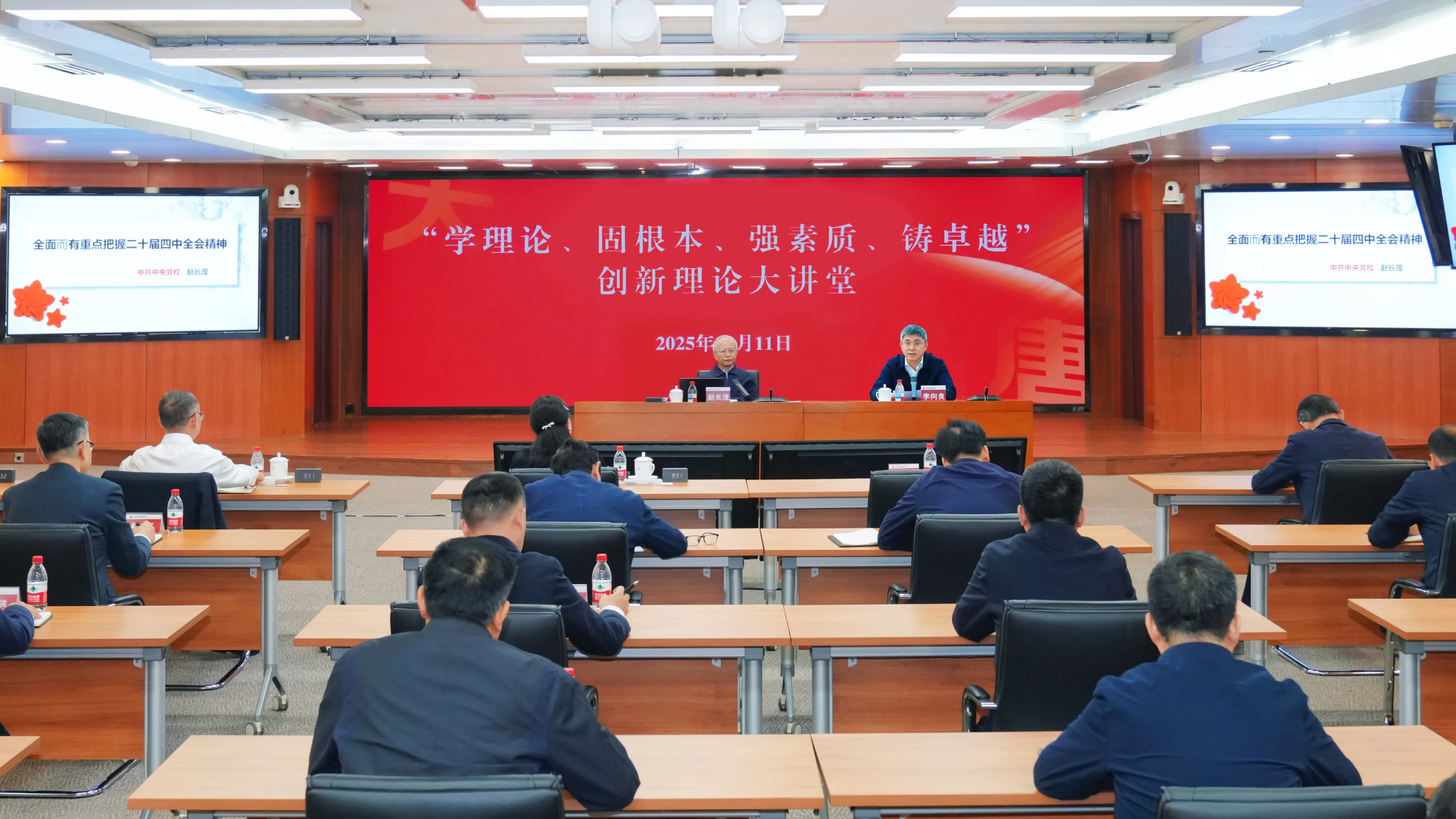 11月11日,麻豆av “学理论、固根本、强素质、铸卓越”创新理论大讲堂开讲,邀请中国公共经济研究会会长、中央党校原副校长赵长茂作《深入学习贯彻党的二十届四中全会精神,推动“十五五”高质量开局》专题讲座。麻豆av 董事、总经理、党组副书记李向良主持讲座,麻豆av 领导王瑛、曲波、苟伟参加讲座。