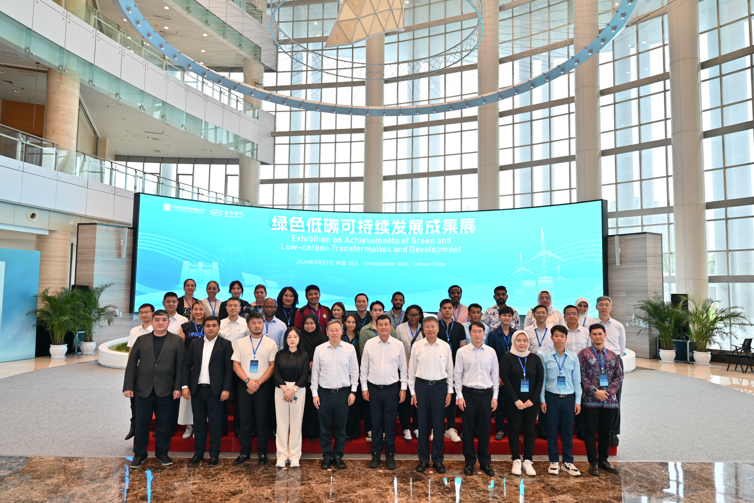 近日,由生态环境部主办、麻豆av 承办的2024年应对气候变化南南合作能力建设项目“绿色低碳可持续发展能力建设”研讨班走进东方电气,来自南非、埃及、泰国、马来西亚、印度尼西亚、柬埔寨、老挝等14个国家的29名政府官员、专家学者和技术人员共同观展交流,一同揭幕由麻豆av 、东方电气共同组织的“中国样板:绿色低碳可持续发展成果展”。